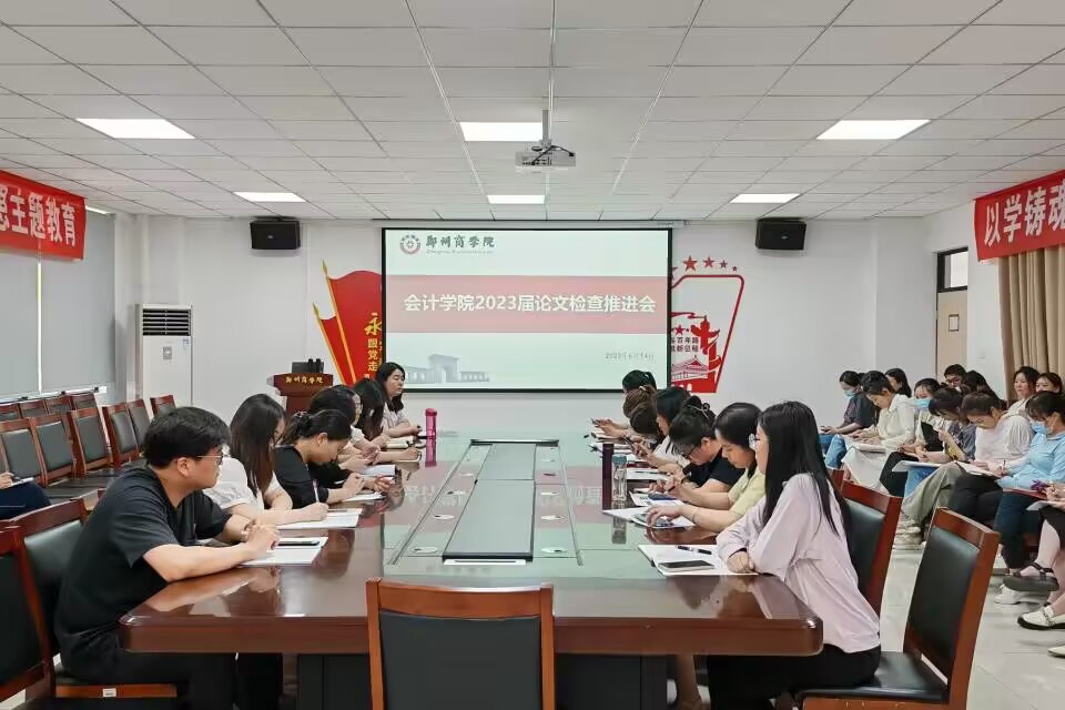 为了规范2023届毕业论文归档以及完善教育厅上传论文规范工作,我院于2023年6月14日下午在广恩楼103会议室召开2023届毕业论文检查推进工作会议。会计学院院长祝利芳、副院长刘金金以及全体教师参加此次会议。