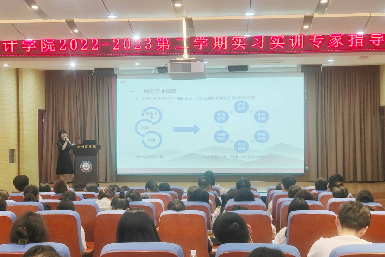 为进一步提升我院人才培养质量,落实实习实训工作精神,我院于6月14日邀请了河南泰铭税务师事务所有限公司合伙人李瑞瑞女士,为审计学专业的学生做了一场题为《财务人员如何具备持续竞争力》的精彩专家报告会,此次报告会由会计学院副院长刘金金、白静老师、各班专业实习指导老师以及20审计1-3班的全体学生参会,本次报告会由白静老师主持。报告会内容涵盖了财务行业现状及发展方向、财务专业人才职业规划建议、何为企业眼中优秀财务人员以及职场新人如何看懂财务数据等四个重要方面。