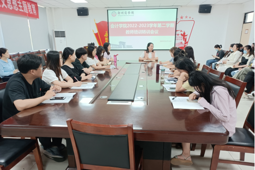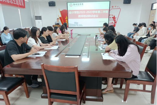 为进一步贯彻落实教师培养培训制度,凸显教师培养培训实效,提高教师的职业道德素养和专业素质能力,6月14日下午,会计学院在GE103会议室召开了2022-2023学年第二学期教师培训转训会议,会计学院院长祝利芳,副院长刘金金以及全体无课教师参加了此次会议。