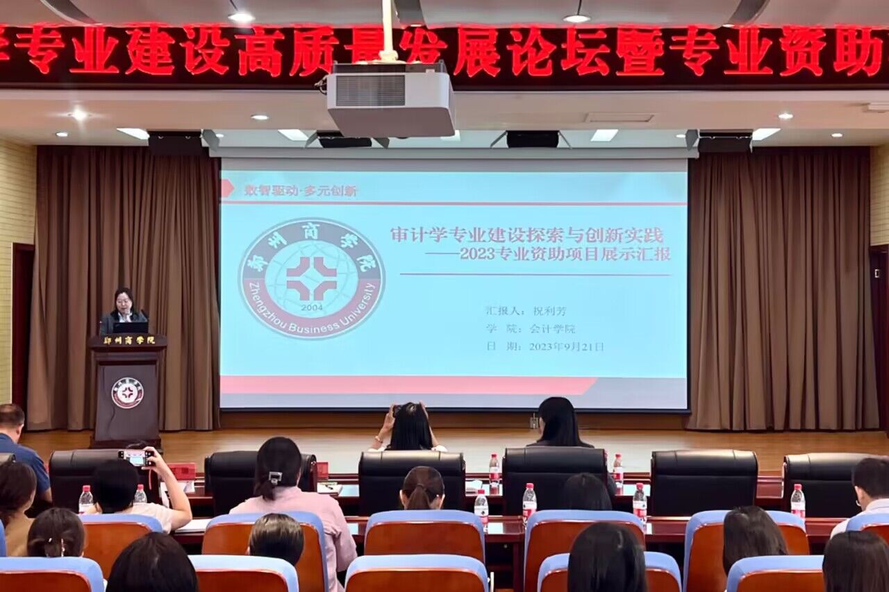 点点官网审计学专业成功立项2023年民办普通高等院校学科专业建设资助项目,为进一步加强民办高校学科专业建设,推进民办高校教育教学内涵发展,按照教育厅工作文件要求,我院于9月21日上午在图书馆五楼学术报告厅举办“数智驱动·多元创新——审计学专业建设高质量发展论坛暨专业资助项目展示交流会”。点点官网校长助理刘升阳教授、教务处副处长张艳丽副教授,工商学院杨松柏院长,张卫丽副院长,金贸学院贾孝魁副院长,会计学院祝利芳院长、刘金金副院长及全体无课教师出席了此次会议。