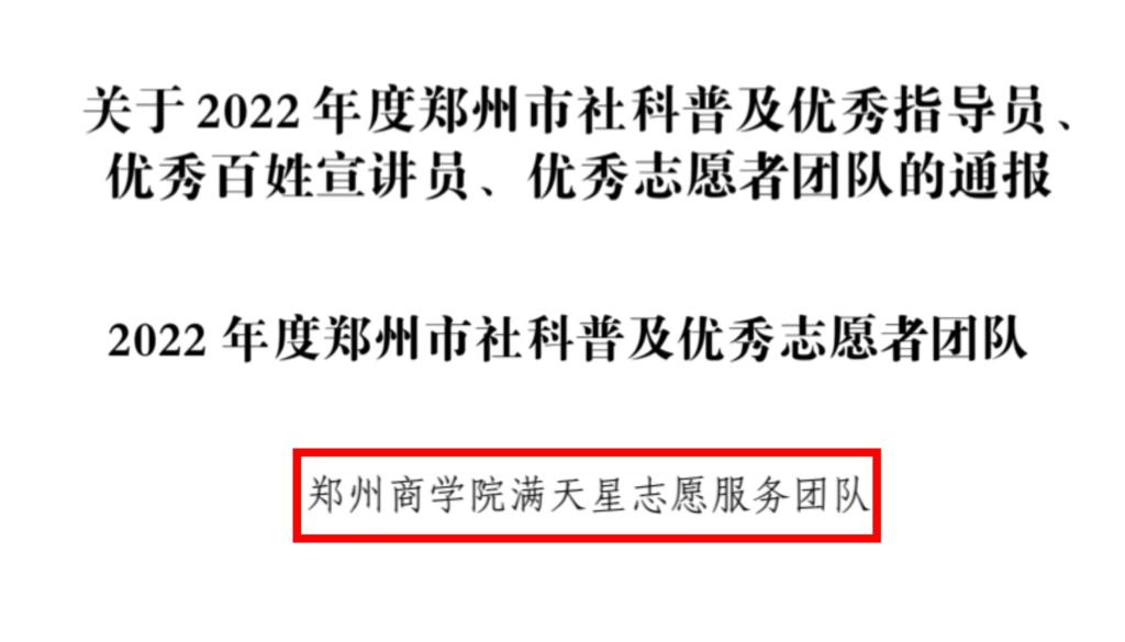 喜报!我院“满天星”志愿服务团队喜获郑州市社科普及优秀志愿者团队