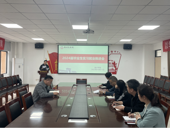 为进一步贯彻落实学校2024届毕业生就业创业工作要求,引导毕业生树立正确就业观念,激发就业意识,明确就业目标,把握就业机会,充分调动学生就业积极性。10月11日下午,会计学院在广恩楼103会议室召开2024届毕业生实习就业工作推进会,我院党委书记刘宏涛、团委书记杨茗涵和全体2024毕业班辅导员参加会议。
