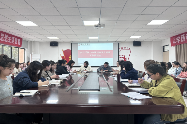 为严格把控人才培养质量,落实应用型人才培养的要求,切实提高毕业论文的质量,推进毕业论文各项工作,10月12日下午会计学院在广恩楼103会议室召开了2024届毕业论文选题工作推进会,会计学院院长祝利芳、党委书记刘宏涛、副院长刘金金及全体辅导员、无课教师参加了此次会议。