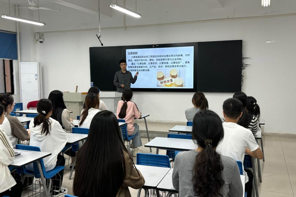 为增强学生的智慧税务专业技能及实战应用能力,我院拟组织学生参与2024年“衡信杯”大学生智慧税务大赛。为使学生深入了解大赛内容,激发对智慧税务的兴趣,9月26日下午,我院在广恩楼208教室举行“衡信杯”大学生智慧税务大赛校内赛宣讲会。