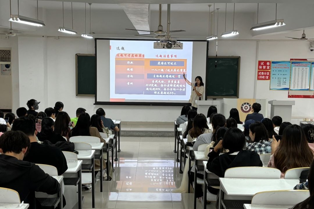 在此次本科毕业论文动员部署会中,副院长刘金金向全体师生传达了2025届本科毕业论文工作的整体安排,主要围绕论文写作重要性、论文写作要求、论文工作时间节点、论文写作规范、维普论文管理系统使用要点、教育部论文抽检等方面展开动员部署。她还就近期论文选题的注意事项进行了重点讲解,提到论文选题概念要清、数据要实、文献要质、内容要满、范围要小等,尤其是论文的选题与撰写要突出时代特征。