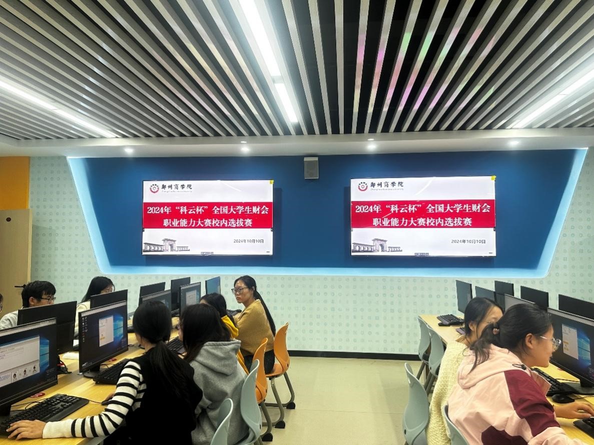 为培养和检验学生在数字化时代背景下的融合能力、应用能力和综合素质,提升在数字化时代背景下财税信息处理技能和智能化财务应用能力,10月10日晚,我院在广恩楼206数智化财税实训室举办2024年“科云杯”大学生财会职业能力大赛校内选拔赛。2022级本科学生组成的十余支队伍参加了此次选拔赛。