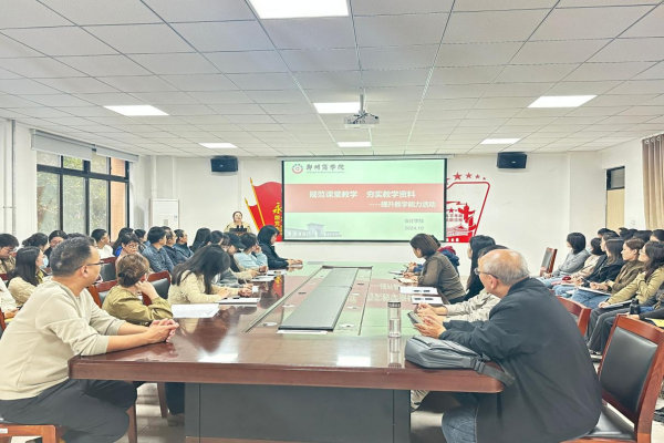 为进一步加强课堂教学管理,规范教学资料,全面提升教师的专业教学能力,10月17日,我院在广恩楼103会议室召开了“规范课堂教学、夯实教学资料,提升教师教学能力”主题培训会。全体无课教师参会,会议由质监专员罗沈娴老师主持。