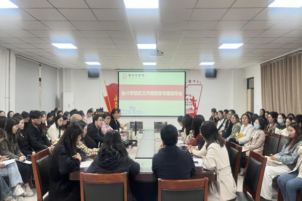 为全面提升2025届毕业论文质量,确保论文工作顺利推进,我院于2024年10月31日下午在广恩楼103会议室召开了2025届毕业论文开题报告专题指导会。会计学院院长祝利芳、副院长刘金金以及全体教师参加了此次会议,会议由副院长刘金金主持。