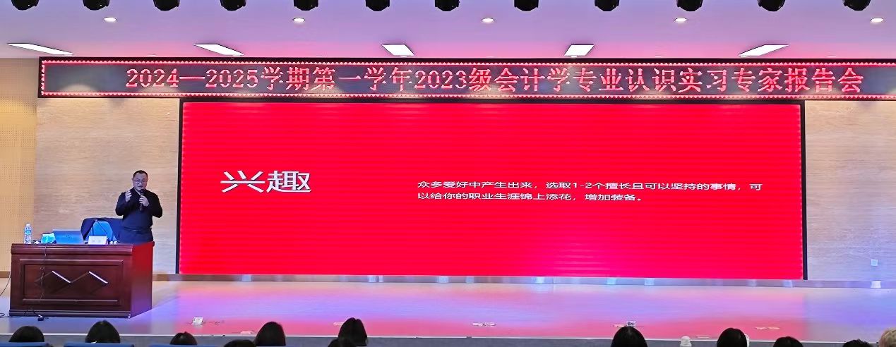 为帮助学生更好了解本专业的发展前景和工作能力需求,提高学生创新意识与综合素质,加深学生对专业知识的理解,深入了解行业前沿,我院邀请了泰辰控股(深圳)集团公司董事、河南公司总经理薛强先生、信永中和会计师事务所(特殊普通合伙)赵利红经理,以专题报告会的形式分别为2023级会计学专业的学生进行现场分享和交流。
