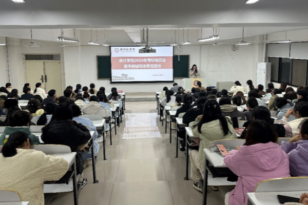 为了充分调动学生考研的积极性,明确其考研目标与规划,为学生提供有力的备考支持,会计学院于12月2日晚上7点,在广恩楼104教室召开了2026年考研动员会暨考研辅导老师见面会。会计学院党委书记刘宏涛、副院长刘金金、全体考研教研室教师以及2026年全体考研学子参加了本次会议。会议由考研教研室老师金晨阳主持。
