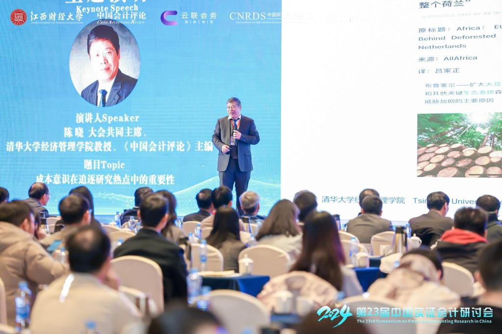 主旨报告环节由对外经济贸易大学副校长陈德球和上海财经大学会计学院院长靳庆鲁主持。新加坡国立大学商学院会计系教授柯滨作了主题为“Accounting research for the digital age:conceptual framework and illustrations”的主题演讲,通过智能管理案例的分享,探讨了管理的本质以及数字化时代的组织管理。大会共同主席、清华大学经济管理学院教授、《中国会计评论》主编陈晓作了主题为“成本意识在追逐研究热点中的重要性”的主题演讲,分享了ESG背后成本的重要性。