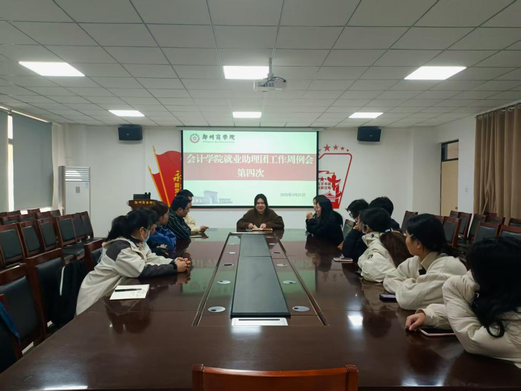 为进一步推动会计学院就业工作的有序开展,确保各项就业促进措施精准落地,明晰后续工作规划。3月31日,我院在GE103教室召开就业助理团工作周第四次例会,本次会议由就业专员李娜老师主持,就业组全体学生助理共同参会。