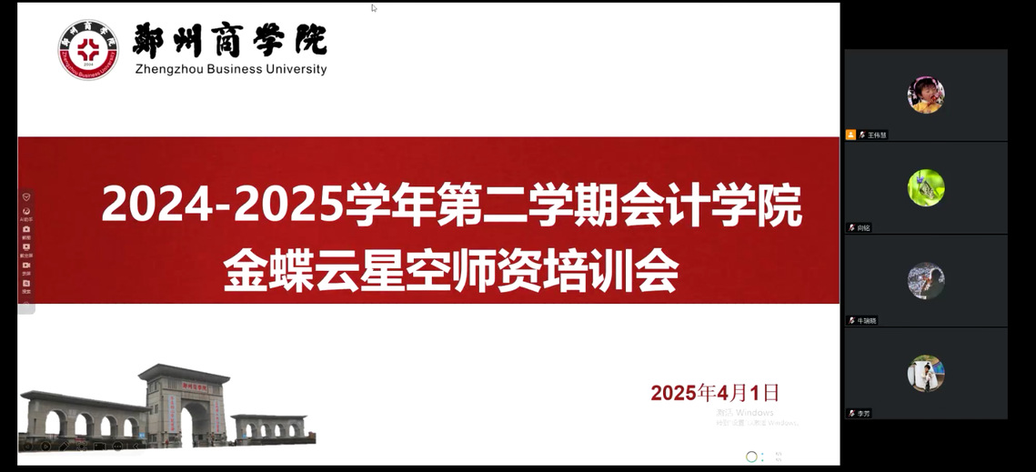 在数字经济浪潮席卷全球、产业变革日新月异的背景下,会计行业正加速向智能化、业财融合方向转型。为抢占新一轮专业改革先机,培养适应“互联网+”时代的复合型会计人才,2025年4月1日,会计学院特邀金蝶精一信息科技有限公司王磊老师线上开展“金蝶云星空师资培训会”,全院实践课程教师参加了此次会议,会议由李芳老师主持。