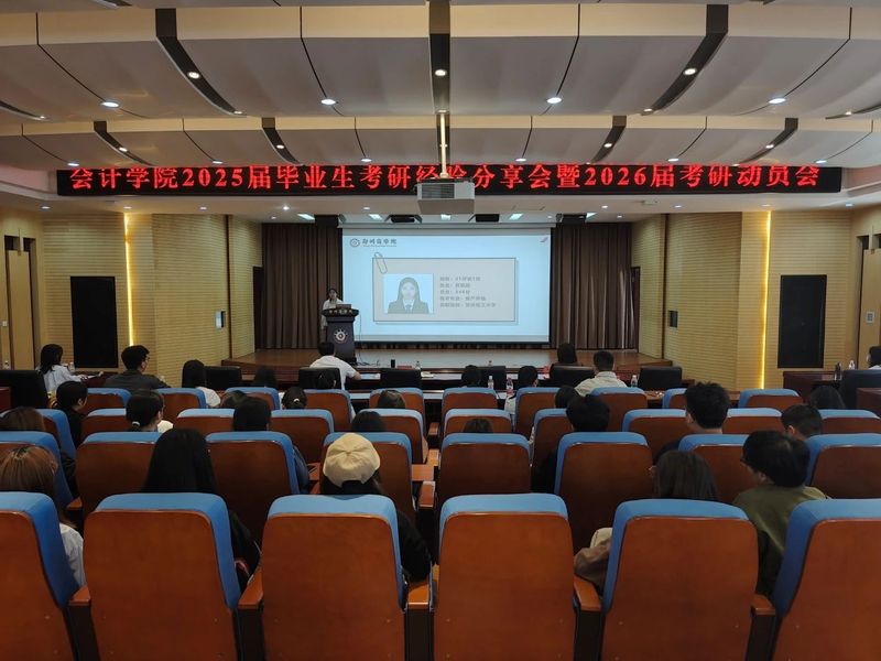 星辉铺就“研”途锦,扬帆勇赴“硕”果约。本次考研经验分享会通过榜样力量传递、形势政策解读与备考策略指导三维赋能,助力学生明晰目标定位、把握复习节奏、筑牢备考心理防线。考研不仅是个人能力的考验,更是学院育人成效的体现,会计学院高度重视考研工作,将以此次活动为契机,稳步推动学风建设,推进高质量充分就业的基础上,不断提升人才培养质量,助力更多学子在“研”途圆梦。