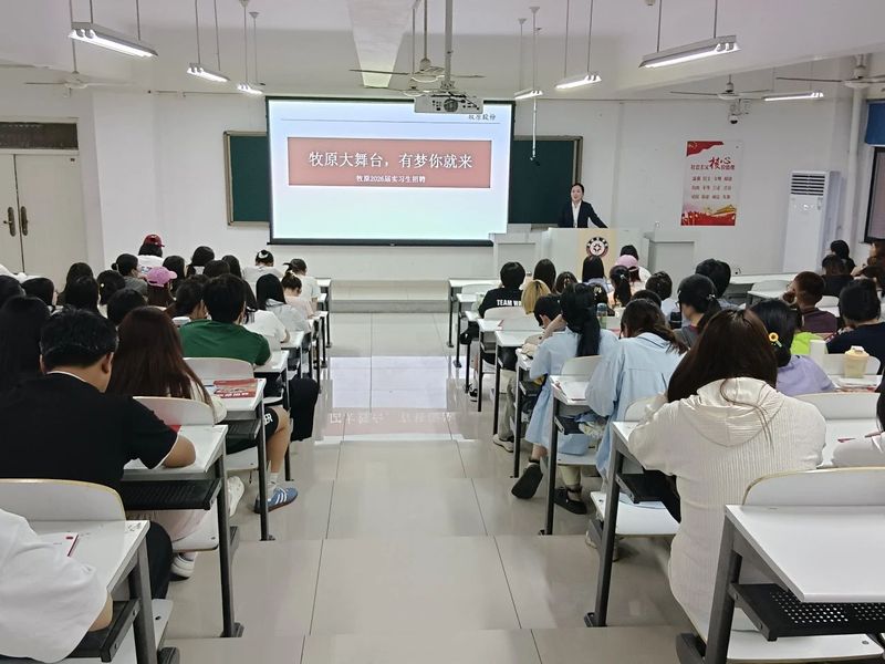 为推动学习贯彻习近平新时代中国特色社会主义思想主题教育走深走实,全面落实“保就业”“稳就业”决策部署,加大校企合作力度、拓宽人才培养路径,5月15日,我院在GE204教室召开牧原企业宣讲会,吸引了众多25届和26届学生踊跃参与。现场气氛热烈,同学们积极与企业代表互动,深入了解牧原的企业文化、业务范围、发展前景以及招聘岗位等相关信息。