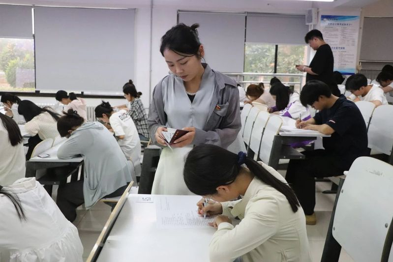 考试开始前,监考教师细致核验考生证件,逐一对准身份信息,深入讲解考场规则与答题规范,强调诚信考试准则;考试全程,监考团队恪守职责、严谨巡查,以规范管理维护考试秩序。考场内,考生严守纪律、专注答题,充分彰显郑商学子的优良学风与精神风貌。