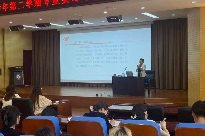 5月12日下午,会计学院特邀河南信誉会计师事务所所长杨晓会在图书馆五楼报告厅作专题报告,杨所长以“职业启航与会计未来大学生职业发展及会计行业变革”为主题,结合多年从业经验讲述了大学生在求职过程中的注意事项以及心态转换,鼓励学生们多学习新技能,主动适应行业技术变革。
