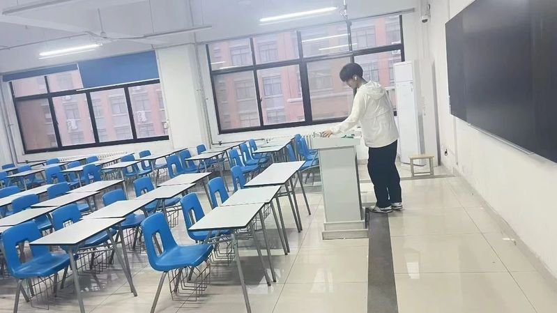 巡查过程中,检查人员依次巡查教室地面清洁度、桌椅摆放、黑板擦拭、垃圾桶分类情况及照明设备运行状态,依次检查每间教室的卫生文明情况,对卫生状况存在问题的教室,检查人员对其进行记录并上报,有效的减少了同学们在教室乱扔垃圾行为的发生;对于需要维护的教学设备,检查人员及时上报维修,致力于为同学们创造更加优越的学习环境。