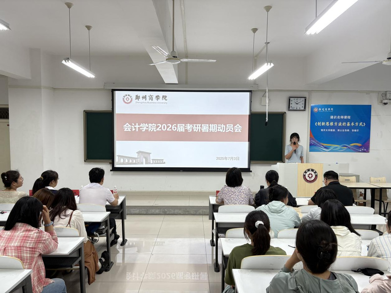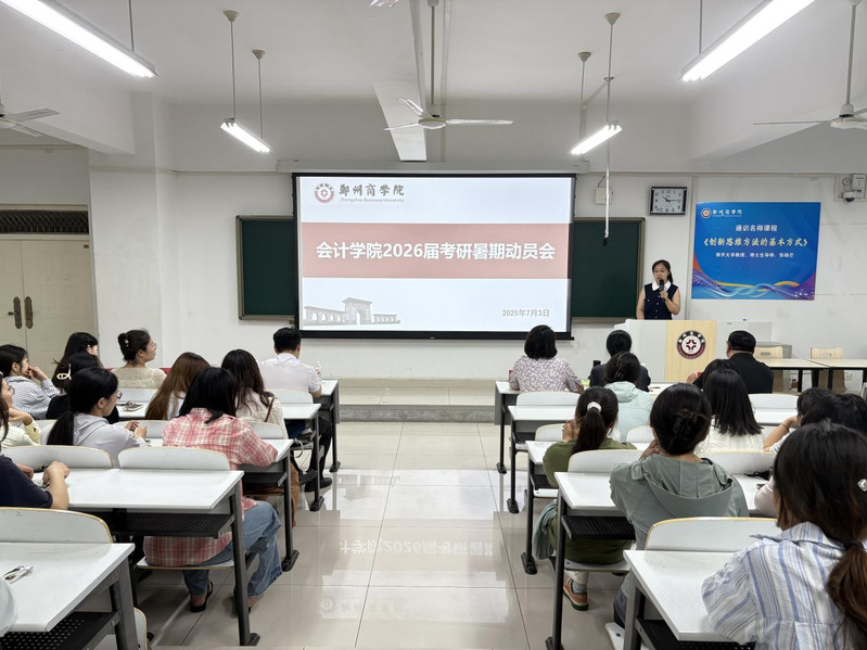 为帮助考研学子指明暑期备考方向,坚定考研信念,提振备考斗志。我院于7月3日在广恩楼104召开了2026届考研暑期动员会。会计学院院长祝利芳、党委书记刘宏涛、副院长刘金金、外语学院孙冰老师、通识教育学院彭先奎老师、会计学院教师代表、辅导员代表以及2026届考研学生参加会议。会议由考研教研室汪艳老师主持。