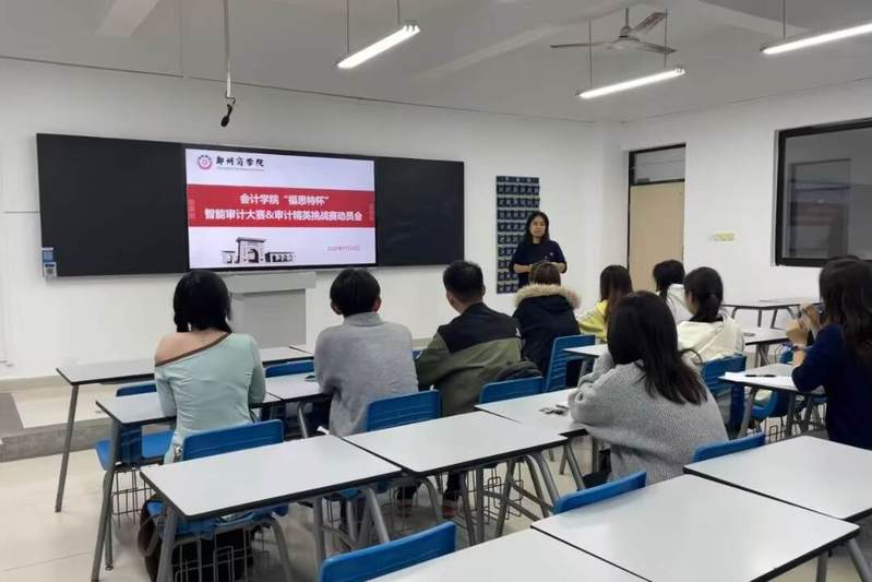 会议伊始,金蕾老师从竞赛性质、竞赛流程、竞赛内容、竞赛形式、竞赛奖项设置等相关信息,详细介绍“福思特杯”智能审计大赛和审计精英挑战赛两项竞赛,并向学生说明接下来校内选拔赛的方式,提醒学生做好时间规划和学习安排。