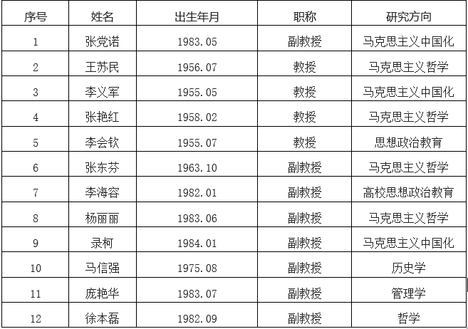 基层社会治理研究中心负责人为马克思主义学院张党诺院长,现有成员57人,其中教授4人,副教授8人,讲师9人。