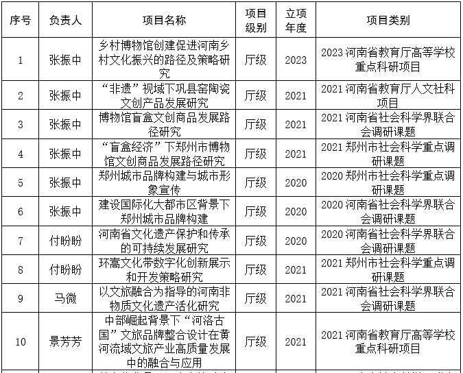 河洛文化创意与发展研究中心负责人为张振中,平台现有成员8人,其中副教授1人,讲师4人,助教2人,合作企业的管理人员1人。