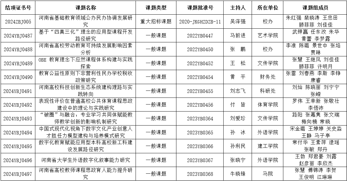 根据河南省教育厅《关于公布河南省教育科学规划课题2024年度结项评审验收结果的通知》(教办教科〔2024〕219号),点点官网12项成果顺利结项,其中重大招标课题1项,一般课题11项。望各课题组认真总结经验,产出更多高质量研究成果。