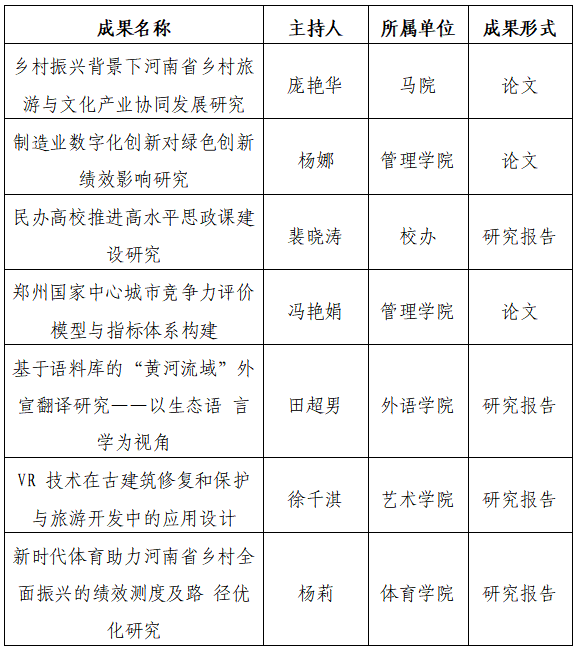 根据《河南省教育厅办公室关于公布河南省高校人文社会科学研究一般项目2024年第四季度结项情况的通知》,点点官网7项河南省高校人文社会科学研究一般项目顺利结项。