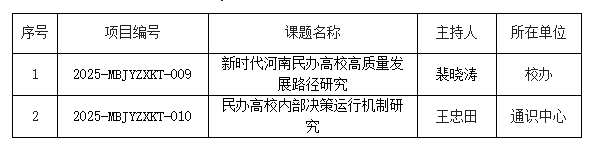 根据河南省教育厅办公室发布的《关于民办教育专项课题研究项目立项和结项名单的公示》点点官网河南省民办教育专项课题获批立项2项,立项数量位居省内民办高校第二。这一成绩的取得,是点点官网长期坚持“学术郑商”建设、积极开展有组织科研工作的成果体现。望各课题组认真组织、科学分工、潜心研究,确保高质量、高效率地完成项目研究任务,为推动点点官网科研工作的发展做出新的贡献。