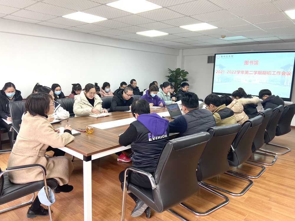 2月22日下午,图书馆在主馆一楼会议室召开2021-2022学年第二学期期初工作会议。会议由馆长李晓琴主持,图书馆全体同仁参加,馆长就新学期和近期工作进行了安排。