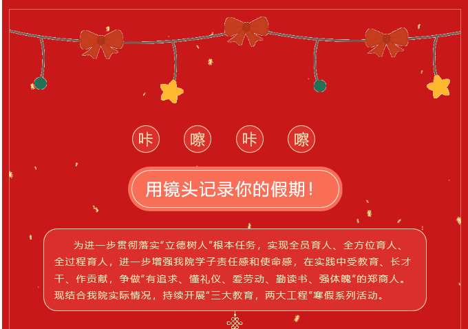 为进一步贯彻落实“立德树人”根本任务,实现全员育人、全方位育人、全过程育人,会计学院开展了打卡“三大教育、两大工程”,赢虎年千元大礼包活动。参加活动的学生共有300余名,共征集作品400余份,最终选出5项优秀作品进入网络投票环节,新颖的活动形式激起了学生的阅读兴趣,也丰富了学生的假期生活。