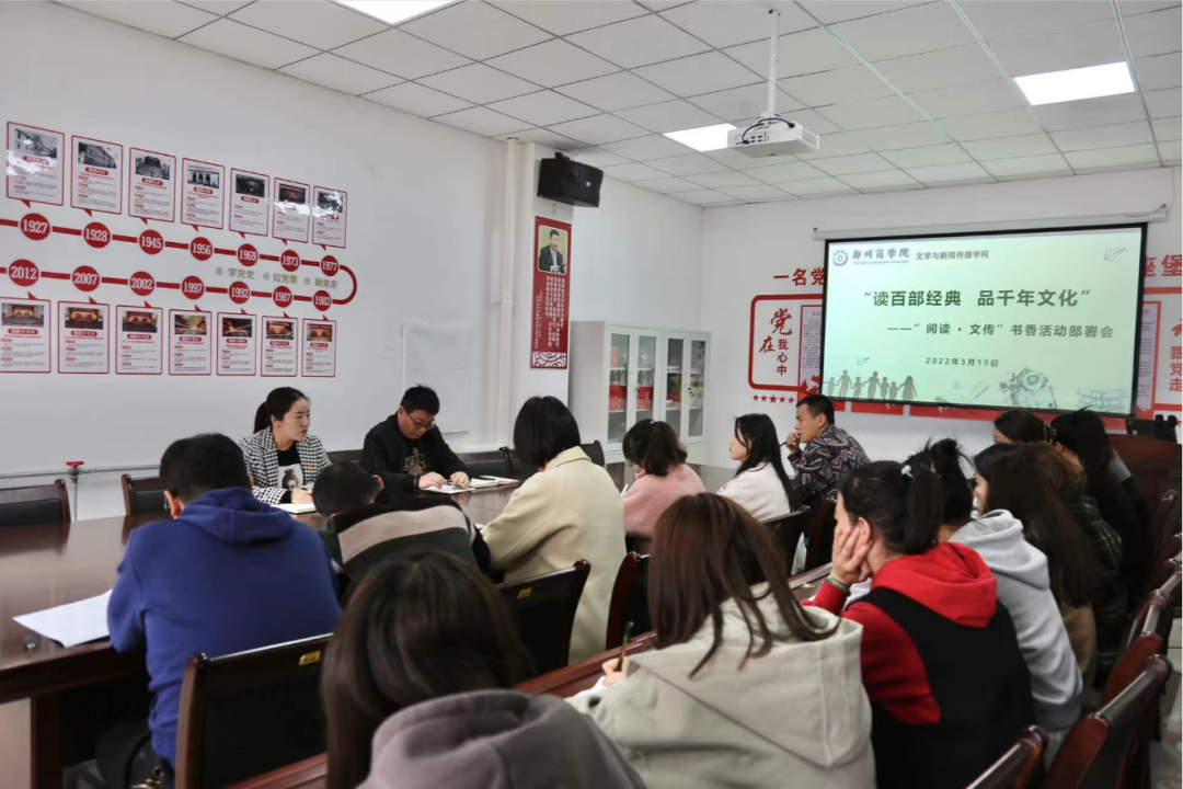 3月15日,文传学院以“读百部经典 品千年文化”为主题,开展“阅读·文传”书香活动部署会。会议对“读百部经典 品千年文化”这一书香活动的形式、内容、开展等进行讨论,作出详细规划,促进书香活动顺利开展,进一步引导学生在“读百部经典 品千年文化”活动中汲取阅读的力量。
