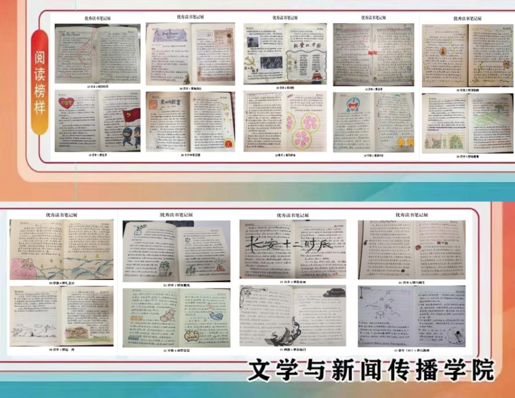 为激发同学们的读书热忱,活跃院内书香氛围,文传学院定期开展“感受文字之美,尽享读书之乐”优秀读书笔记展活动。每周将优秀作品在学院“阅读榜样”专栏中进行展览,激励同学们撰写笔记热情的同时,传递阅读力量,进一步提高了文传学子思想觉悟和文化底蕴,营造清风缕缕满校园的书香氛围。