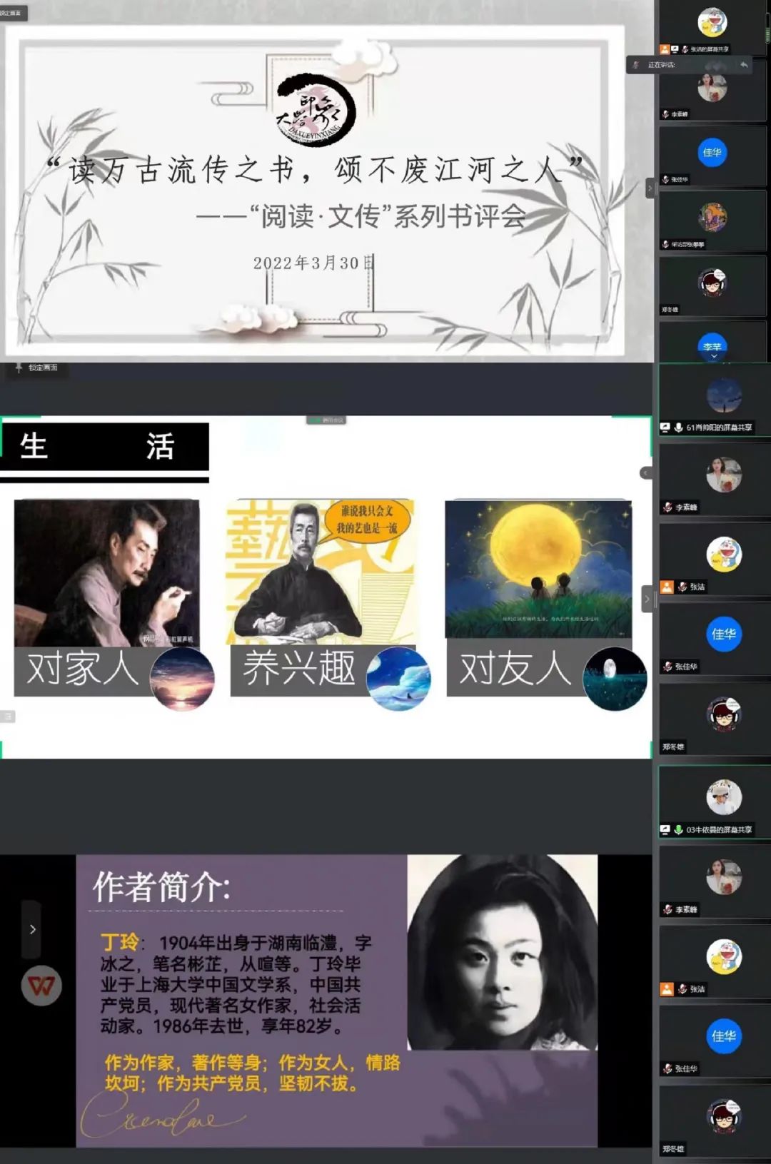 3月30日,文传学院开展“读万古流传之书,颂不废江河之人”线上书评会。本次书评会以“人”为中心,将目光放到作家本身,深挖作家生平经历,以别样的角度去品味作家的作品。此次活动旨在传递书籍力量,激发同学们的阅读热情,贯彻落实书香校园阅读经典工程建设。