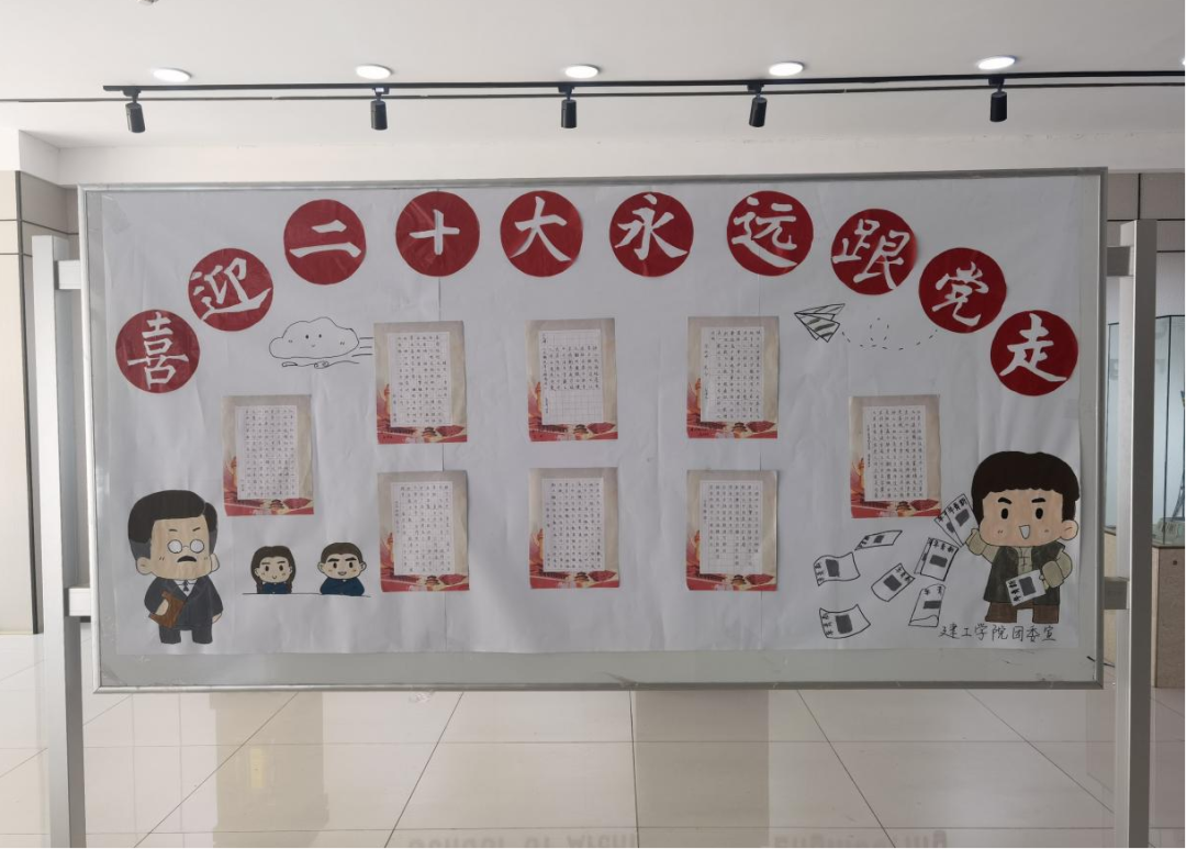 为了喜迎党的二十大召开,弘扬中国共产党领导中国革命和建设取得的成就,坚定信念跟党走。4月11日,建工学院举办红色诗词展,以诗词来歌颂红色经典。鲜艳的党旗迎风飘扬,愿祖国的明天更加灿烂辉煌!