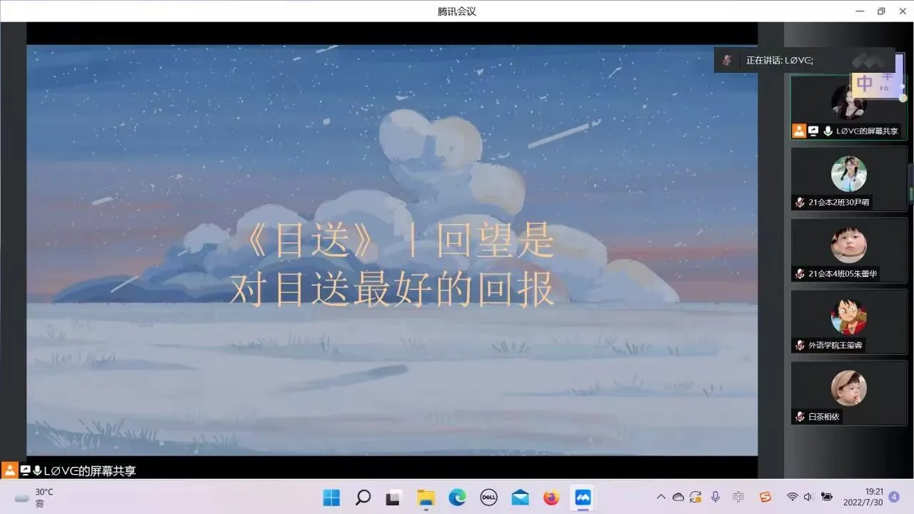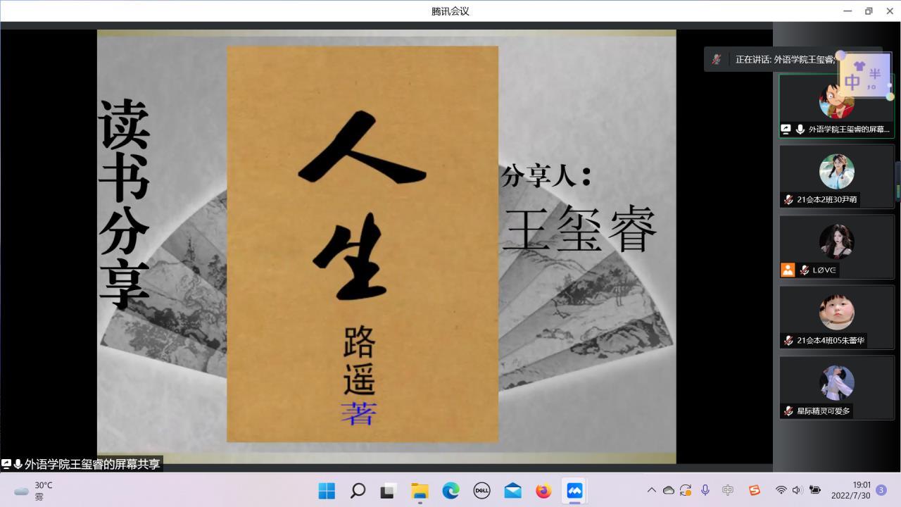 为推动“书香校园阅读经典工程”建设,引导学生阅读经典,7月30日晚,由图书馆主办、郑商书友会的“我的读书故事”暑期线上巡讲活动,通过腾讯会议成功举办。本次活动主要由21英语专升本1班王玺睿同学分享《人生》、21商本5班沈晓凤同学分享《目送》。