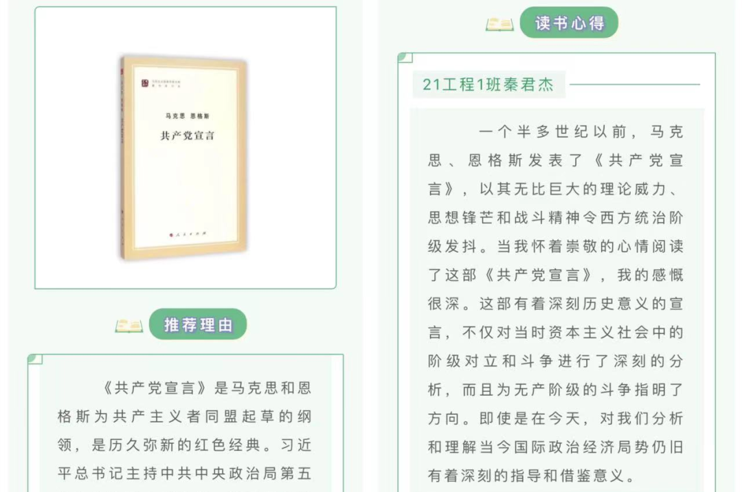 为不断提升建工学院“书香校园阅读经典工程”建设水平,培养学生的良好阅读习惯,建工学院从7月份暑假至今,持续推进大国工匠读书系列活动,组织开展“好书推荐”系列,引导全院学生共读好书、共品书香,营造学院良好阅读氛围。