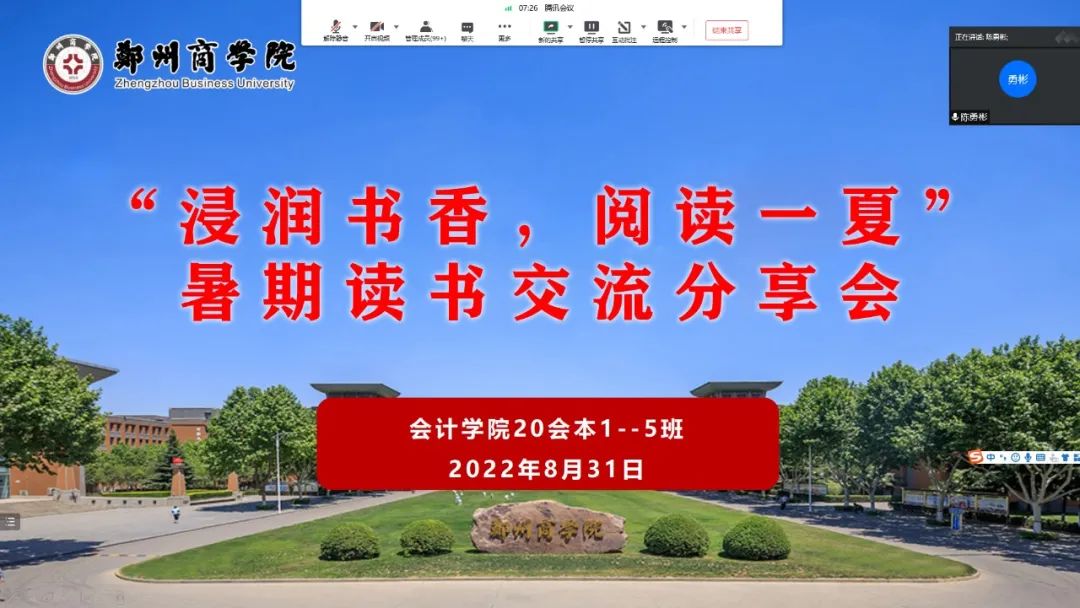 为强化书香校园阅读经典工程建设成果,进一步促进会计学院“书香校园阅读经典工程”与班级活动相结合,营造多读书、好读书、读好书的良好习惯,20级学生于8月31日组织开展“浸润书香,阅读一夏”暑期读书交流分享会。此次分享会的顺利开展,有利于同学们在阅读中积累知识,增长才干,让书香浸润心灵,让书香充实生活。