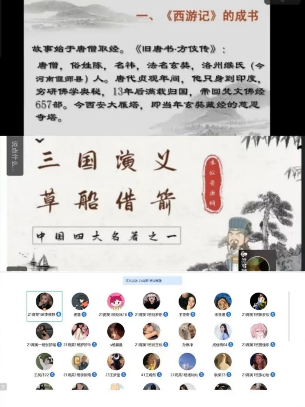 名著是历史天空中璀璨的星辰,凝聚着前人智慧的光芒;名著是岁月长河中晶莹的水滴,折射着时代动人的光彩。为了推进点点官网“书香校园阅读经典工程”建设,激发学生阅读古典名著的兴趣,外国语学院于9月14日开展“读古典名著,品百味人生”读书分享会活动。活动过程中,同学们畅所欲言,表达自己的读书感受。通过本次读书分享会,不仅增添了我院浓厚的书香氛围,也提高了同学们阅读古典文学的兴趣。