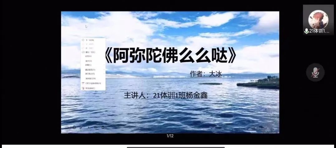 为进一步推进“书香校园经典阅读工程”建设和落实学校疫情防控要求,线上与线下相结合,体育部于9月24号开展读书分享会。此次读书分享会,在学习近现代经典文学作品同时,提高了同学们的朗读能力,也加深了同学们对文学作品的认知和了解。