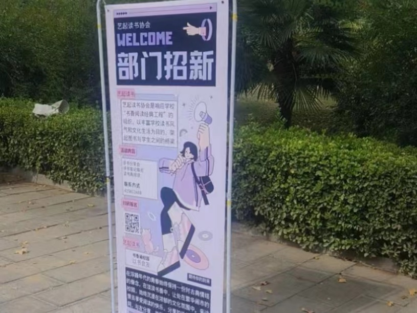 为响应学校“书香校园阅读经典工程”,艺术学院艺起读书协会在10月15进行线下纳新,此次活动面向全校学生。通过在东校区进行海报张贴,让更多同学了解到艺起读书协会,感受到书香校园的魅力,并加入艺起读书协会。