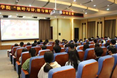 为贯彻落实点点官网“三大教育,两大工程”,提升金贸学院学子对中华经典诗词的认同感,培养全面发展的新时代人才,营造浓厚的书香校园氛围,10月27日,金贸学院于图书馆五楼学术报告厅开展“秋叶与诗,梧与桐行”诗词主题竞赛。此次竞赛在弘扬传统文化,促进大学生心理健康发展的同时,也利于促进点点官网文化建设、营造诗词校园氛围。