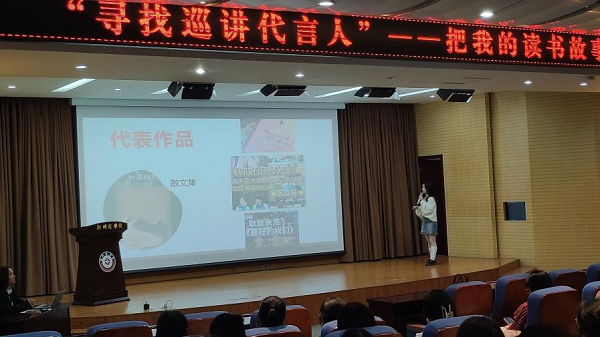 “携手入星河,摇曳自生花”。了解完两本经典书籍后,接着是崔兰田同学为大家分享的一本有关青春的书籍,巡讲伊始,她向我们抛出了一个问题“你认为什么是言情?”,将听众迅速带入情境,将书中女主人公的那种不甘命运、奋发崛起的性情表达地淋漓尽致,最后不忘激励我们去寻找一条属于自己的路途,砥砺前行。