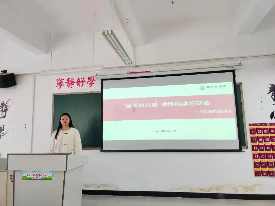 为深入学习贯彻党的二十大精神,营造“多读书、读好书、会读书”的良好氛围,信工学院根据学校书香校园阅读经典工程实施方案要求,积极选定红色经典、励志成长类书籍。3月27日中午,团学干部开展第五期“信仰的力量”专题阅读分享会,引导全院学生从党的重大成就和历史经验中增长智慧,增强信心,树立“读书强国”的信念,肩负时代使命,贡献青春智慧和力量。