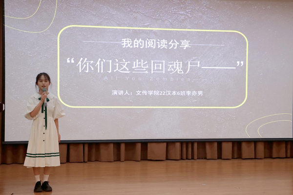 4月7日下午,第二场阅读巡讲比赛在图书馆五楼报告厅成功举办。本场比赛共有四位读书巡讲人为我们分享他们的读书故事,分别有尹萌同学分享的《人间告白》、肖帅阳同学分享的三本书——《月亮与六便士》、《平凡的世界》和《苏东坡传》和赵宁丹同学分享的《可是我偏偏不喜欢》,以及李亦男同学分享的有关《你们这些回魂尸》的读书故事。