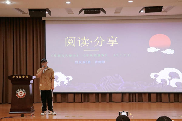 肖帅阳同学以问题“读闲书有什么用”作为开场,将他高中时读闲书的经历为依托讲述了《月亮与六便士》的故事,向大家分享了他两次读此书的不同感悟。由前一本的感悟自然地过渡到第二本书——《平凡的世界》的故事,文字的巨大的精神力量使他更加积极主动。层层递进,肖帅阳同学最后讲述了关于《苏东坡传》的故事,得到了人生万事都要乐观向上的启示。结尾,他对开场的问题给出了解答——读书使人快乐、思考、明志便是最大的用处。