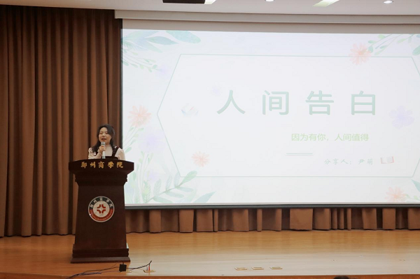 比赛开始,尹萌同学以问题为角度切入,带领大家进入了这本《人间告白》。她用心理老师的一段爱情长跑视频为例,以此向我们展现了书中主人公们如花初绽的甜蜜爱情。月满则亏,随着尹萌同学的缓缓阐述,我们看到了一个充满温情的家庭将要遭遇亲人离世的悲剧,可这家人依旧很坚强。她颤抖的声音,已经告诉了我们这本书有如何的动情。尹萌同学用一颗充满浪漫主义的心去体会,去讲述,最后发出了“珍惜当下,珍惜眼前人”的阅读感悟。