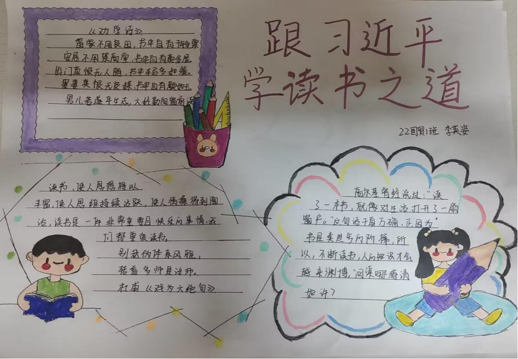 为了深入贯彻党的二十大精神,用丰富多样的形式帮助金贸学院学生更加深入阅读,丰富校园文化内涵,营造浓郁的书香校园氛围,我院举行了“跟着习近平总书记学读书之道”系列活动。金贸学院青年学生积极参加相关活动,丰富了同学们的阅读经历与阅读表达形式,展现了同学们对读书的强烈热情。