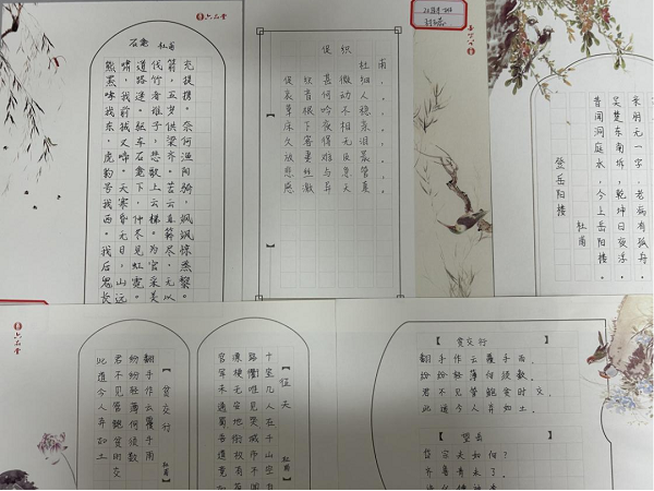 为帮助学生品味笔墨间的韵味悠长、发现传统诗词中的文化之美,4月24日至28日,建工学院组织师生开展了杜诗誊写活动。活动中,师生积极参与并认真抄写自己喜爱的古诗词,在抄写的过程中了解中国传统文化的博大精深和无限魅力。一方面,有助于培养学生的文化情操;另一方面,落实了学院的内涵建设要求。