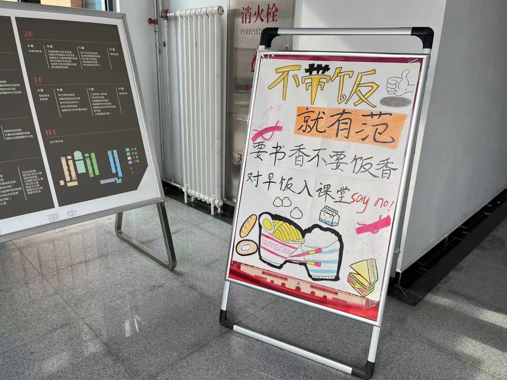 博览群书添雅趣,缕缕书香胜饭香。美丽校园,书香教室,需要我们共同维护。当代大学生应是文明行为的代言人,文明举止不仅体现着自身的优良素质,也展现着青年人的靓丽形象。为了进一步建设文明校园、和谐校园,营造优美舒畅的学习氛围,11月15日,信工学院制作板报,发起文明伴书香”倡议书活动,用绘画和文字一起号召大家创建文明校园。让我们立即行动起来,不再做“课堂早餐族”,为创建良好的学习环境贡献自己的一份力量吧!